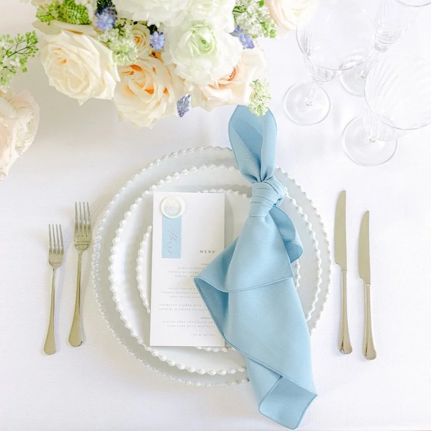 For a finished look, our matching linen napkins are a great pairing addition. Linen table napkins are traditionally linked to sophisticated dining experiences, where guest comfort is prime. Whilst your guests delicately dab the remainders of your delightful wedding breakfast from their faces, take pride in opting for an eco-friendlier wedding décor option. Unlike their paper serviette counterparts, these wedding linen napkins are washed and re-used after each hire reducing waste.